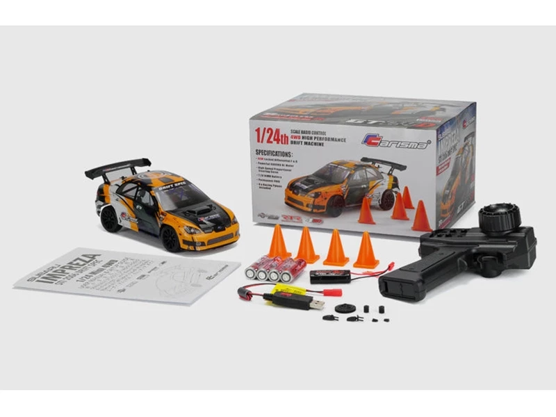1/24th is the perfect scale for this type of car as you can turn any suitable indoor space into a drift circuit and use the included cones to practice clipping those apexes. With locked diffs and bespoke hard compound drift tyres as standard, this officially licensed product has been developed in conjunction with Subaru to offer the classic 2006 STI in a stunning new Carisma drift spec livery and giving end users hours of counter steering fun where space is at a premium.