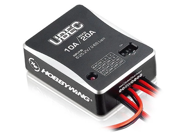 This UBEC is an external switching mode DC-DC regulator; it draws DC voltage from 2-6S LiPo battery, drops it to a voltage level that is suitable for your receivers and other electronic devices, and keeps providing the stable current output of up to 10Amp. As the UBEC has such a powerful output capability, so it’s particularly applicable for large helicopters and fixed-wing aircraft.