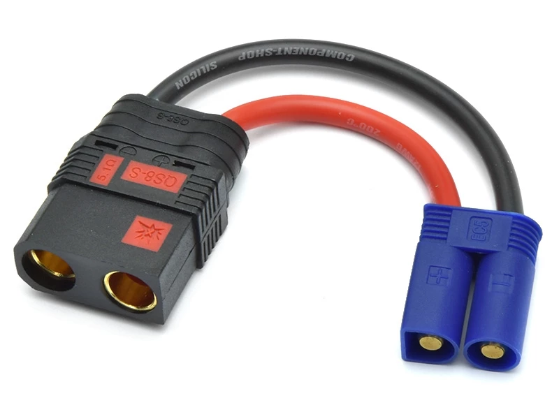 Made to convert a battery fitted with a EC5 connector to be used on a ESC fitted with a QS8 Connector.